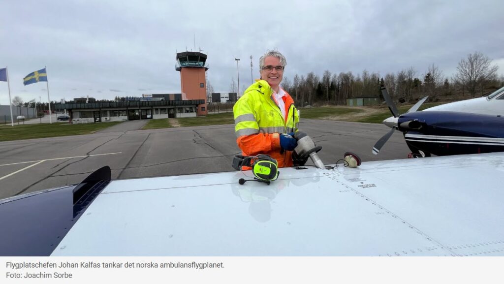Ambulansen har inte ens hunnit lämna flygplatsen innan flygplatschefen Johan Kalfas börjat tanka ambulansflygplanet. Inom en halvtimme står han framför planet och signalerar att det kan starta motorerna för lyfta och påbörja färden hem Norge som beräknas ta cirka en timme i motvinden. Bakom ratten på flygplatsens brandbil sitter Tomas Holm.