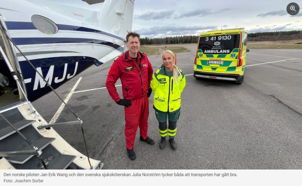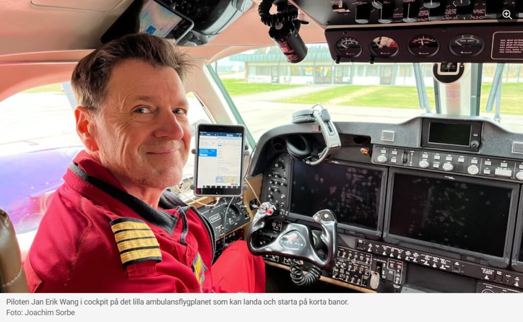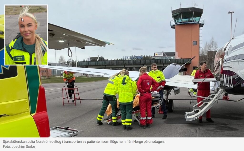 Sjuktransporten sker inom ramen för den nordiska konventionen som innebär att om man blir sjuk eller skadad i ett annat nordiskt land kan man blir hemtransporterad till ett sjukhus där man bor. Piloten Jan Erik Wang säger att han har varit på nästan alla svenska flygplatser.
