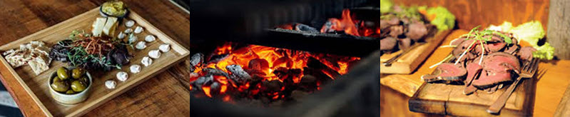 1 glas mousserande vin, hemrökt hjortinnanlår, torkad vildsvinskarré, rökt älgkött, gravad hjortytterfilé, rökta oliver, rökt ost, lingonaioli, fröknäcke. Vildsvinsbog på grillen för smak och stämning.